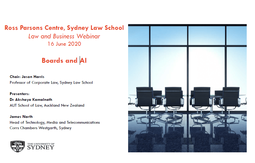 Earlier this week, I had the pleasure of attending a webinar hosted by The University of Sydney on ‘Boards and AI’. For me, having some spare time during this pandemic is a great opportunity to expand horizons and explore new areas of law. It was a fantastic webinar chaired by Jason Harris (professor of CorporateContinue reading “Boards and AI Webinar”